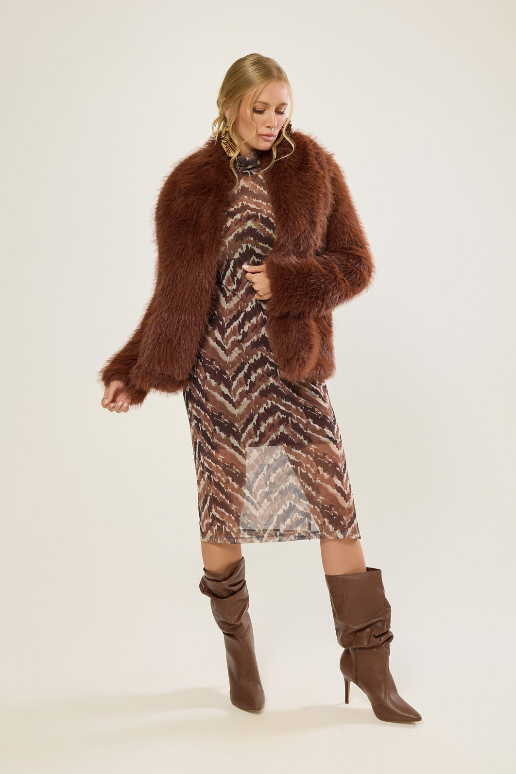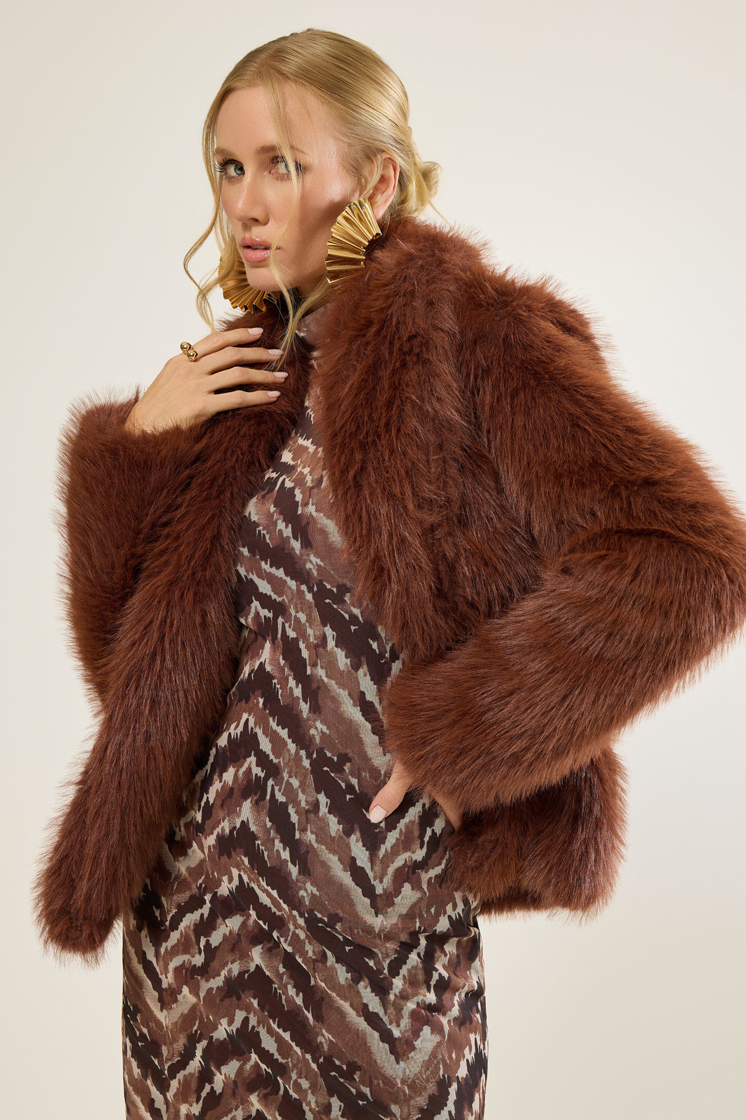 AdicionarCasaco em tecido de pelo sintético. Detalhe em bolso na lateral funcional e forro em toda a peça. A peça veste mais solta no corpo. Composição casaco: 100% Poliéster; Forro casaco: 100% poliéster. MEDIDAS DA MODELO: *MODELO VESTINDO TAMANHO P/36 NA FOTO*.