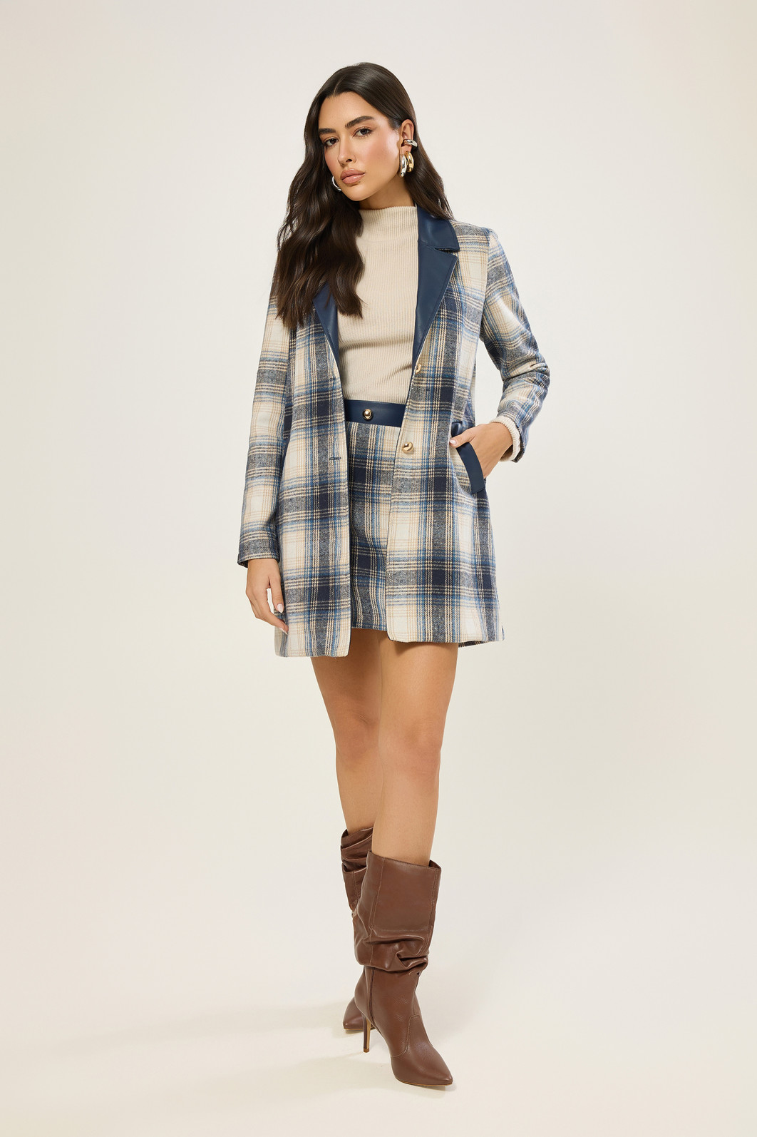 AdicionarSobretudo em tecido xadrez flanelado mais estruturado. Possui bolso frente funcional. Detalhe de recortes em couro PU e botões dourados. A peça veste mais soltinha ao corpo. Composição sobretudo: 51% Poliéster, 36% Algodão, 09% Viscose, 03% Poliamida, 01% Acrílico. Composição recortes: 50% Poliéster, 50% Viscose. Composição forro: 100% Poliéster. MEDIDAS DA MODELO: *MODELO VESTINDO TAMANHO P/36 NA FOTO*.